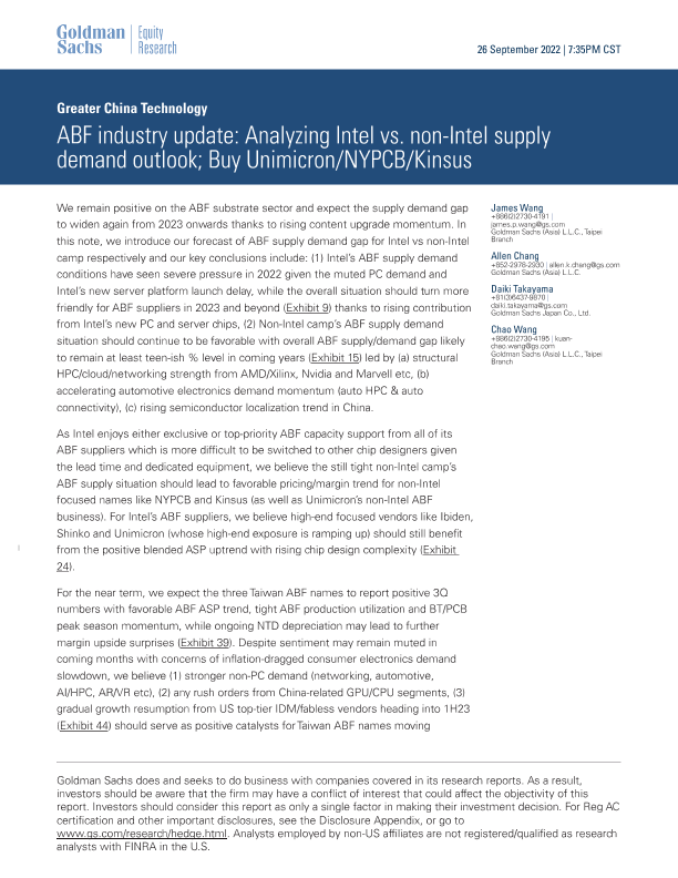 【Goldman Sachs】【20220926】ing Intel vs. non-Intel supply demand outlook; Buy Unimicron_NYPCB_Kinsus-26页