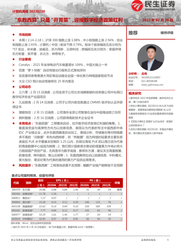 【民生证券】【20220220】计算机周报:“东数西算”只是“开胃菜”,迎接数字经济政策红利-17页