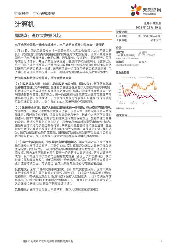 【天风证券】【20220220】计算机周观点:医疗大数据风起-5页