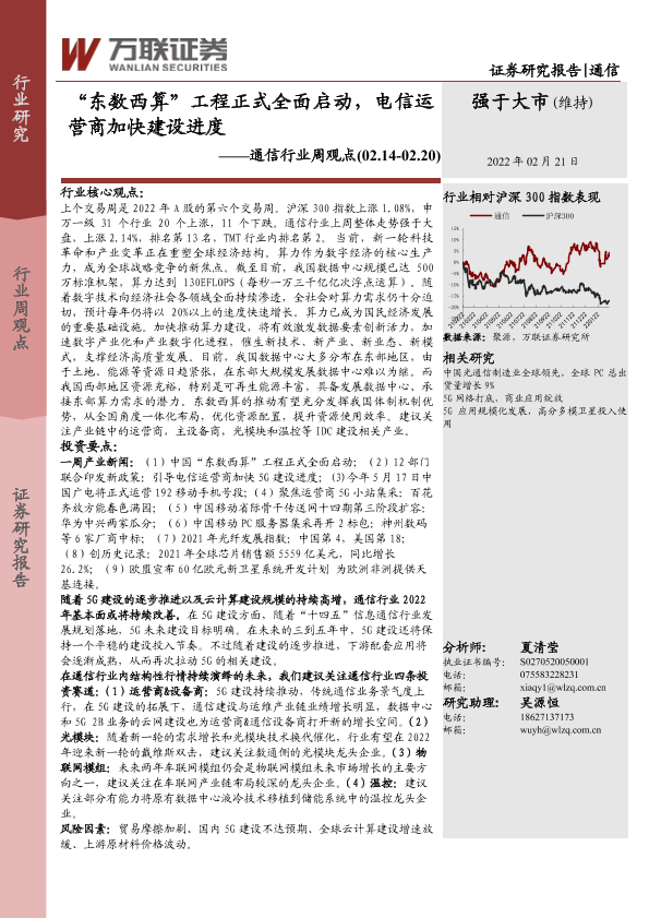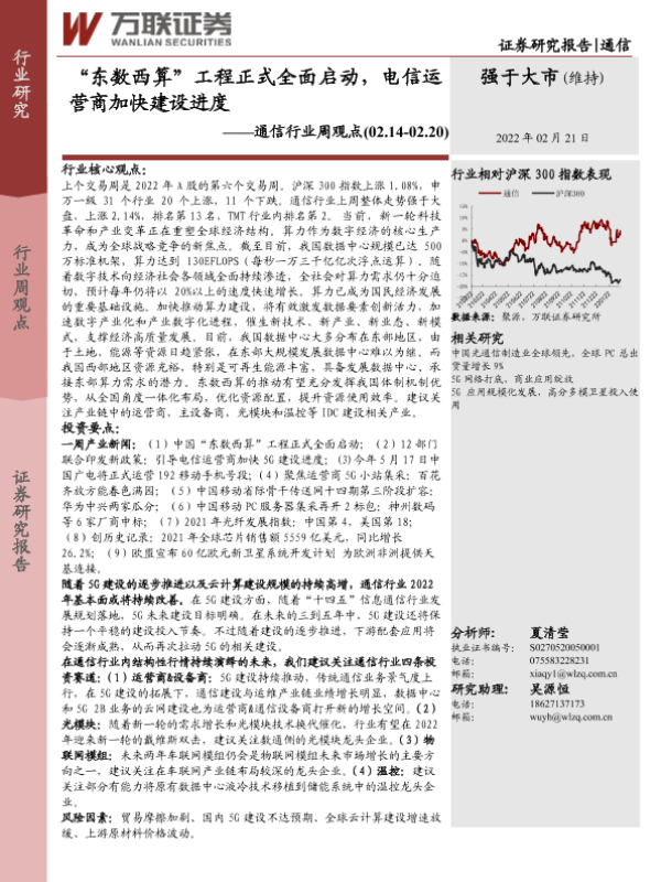 【万联证券】【20220221】20220221-万联证券-通信行业周观点:“东数西算”工程正式全面启动,电信运营商加快建设进度-12页