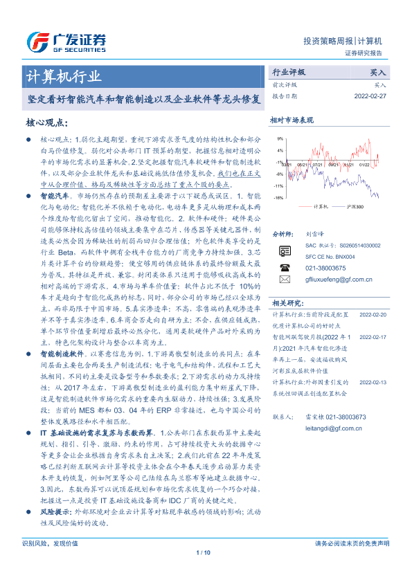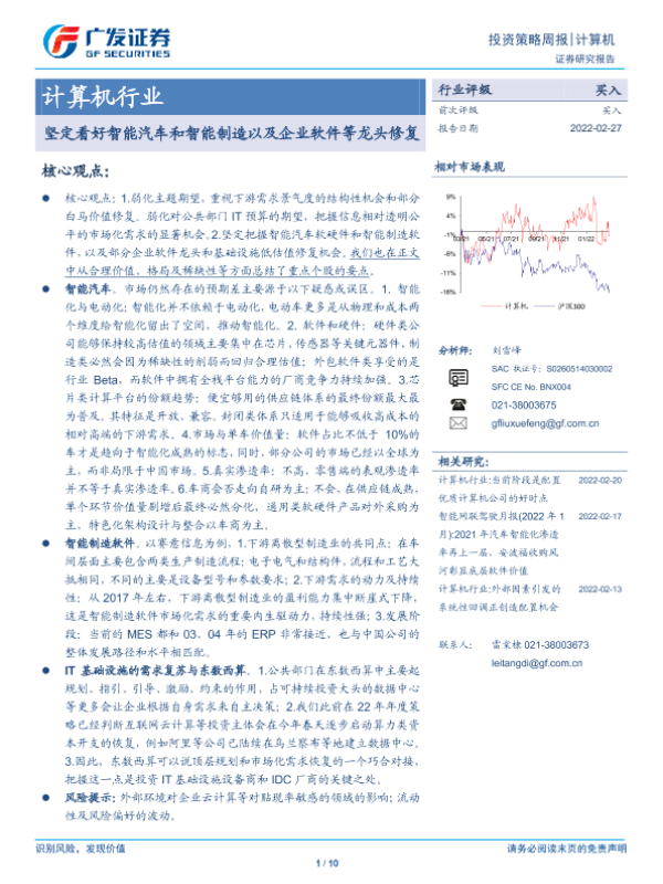 【广发证券】【20220227】20220227-广发证券-计算机行业投资策略周报:坚定看好智能汽车和智能制造以及企业软件等龙头修复-10页