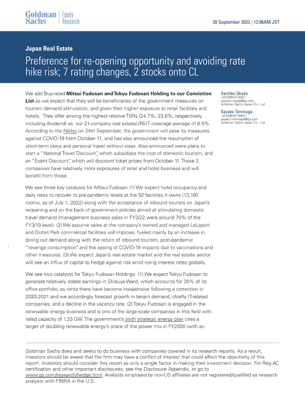 【Goldman Sachs Japan Co.&Ltd.】【20220928】Opportunity and avoiding rate hike risk; 7 rating changes, 2 stocks onto CL-79页