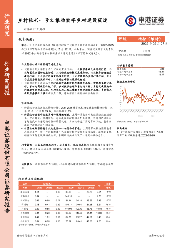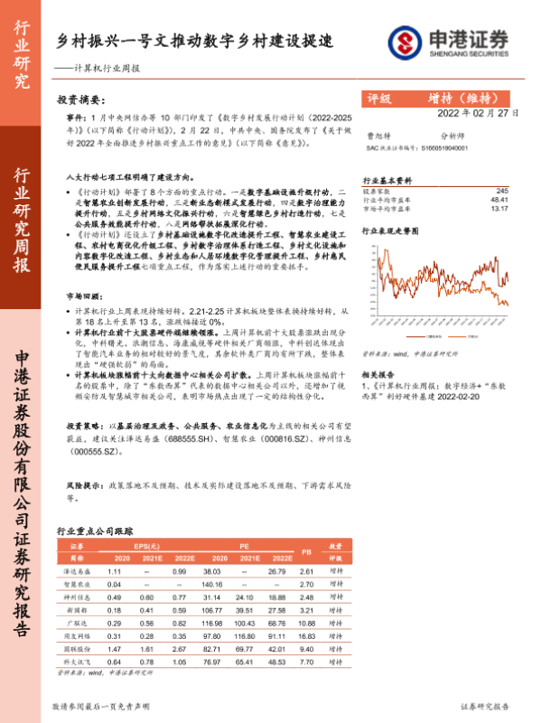 【申港证券】【20220227】计算机行业周报:乡村振兴一号文推动数字乡村建设提速-6页
