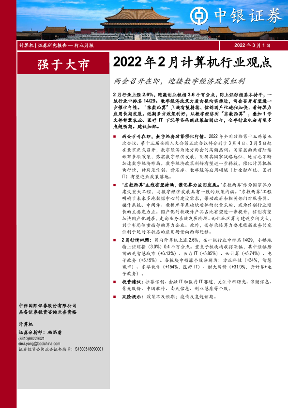 【中银证券】【20220301】2022年2月计算机行业观点:两会召开在即,迎接数字经济政策红利-15页