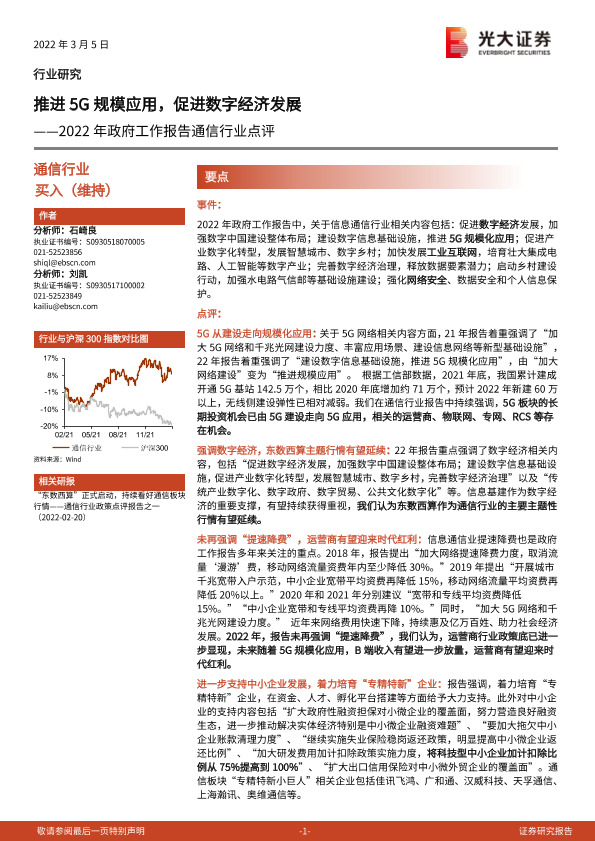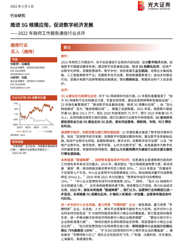 【光大证券】【20220305】2022年政府工作报告通信行业点评:推进5G规模应用,促进数字经济发展-3页
