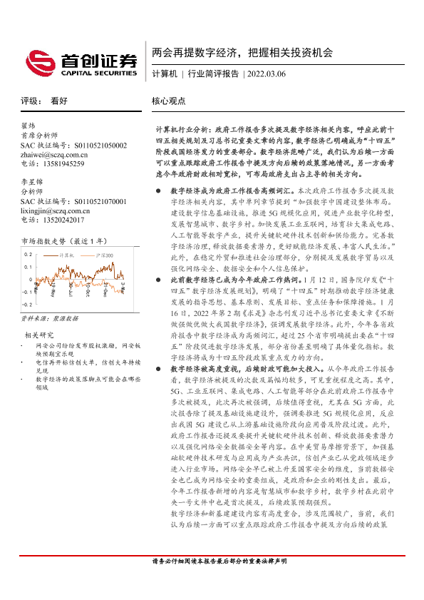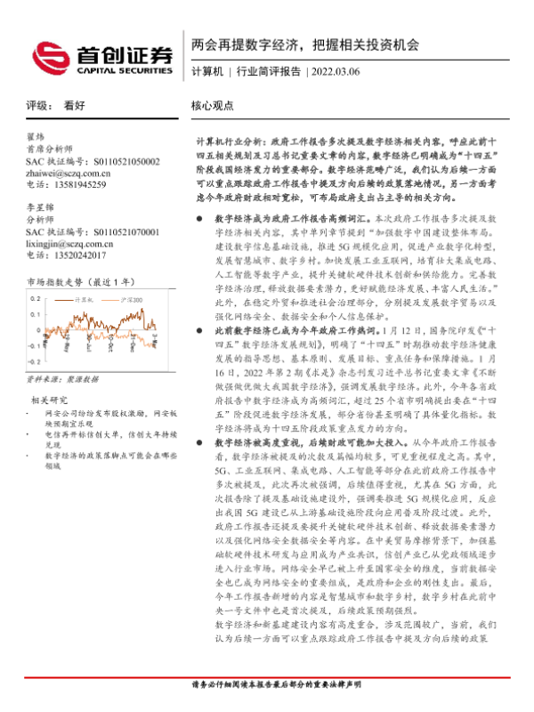 【首创证券】【20220306】两会再提数字经济,把握相关投资机会-3页