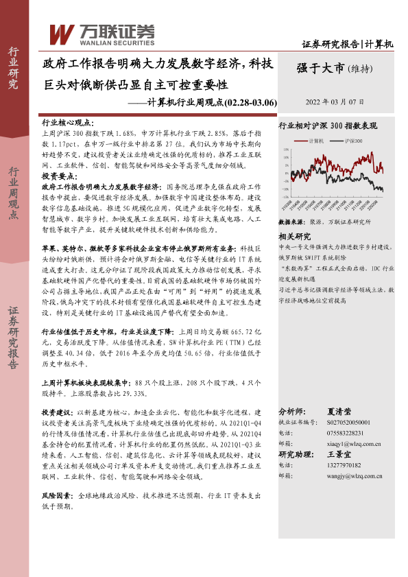 【万联证券】【20220307】政府工作报告明确大力发展数字经济,科技巨头对俄断供凸显自主可控重要性-11页