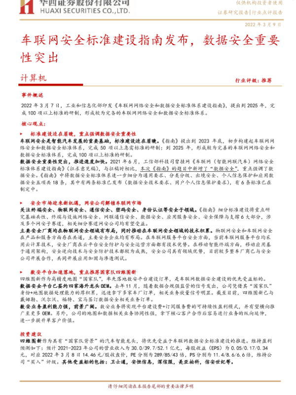 【华西证券】【20220309】车联网网络安全和数据安全标准体系建设指南发布,数据安全重要性突出-4页