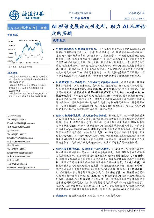 【海通证券】【20220309】信息服务行业跟踪报告:AI框架发展白皮书发布,助力AI从理论走向实践-2页