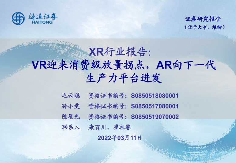 【海通证券】【20220311】XR行业报告:VR迎来消费级放量拐点,AR向下一代生产力平台进发-42页