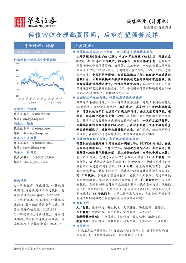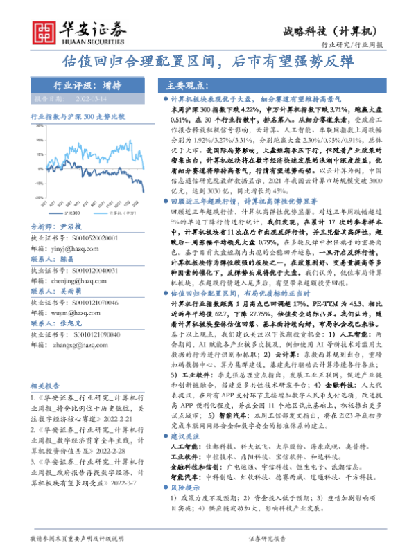 【华安证券】【20220314】20220314-华安证券-战略科技(计算机)行业周报:估值回归合理配置区间,后市有望强势反弹-12页