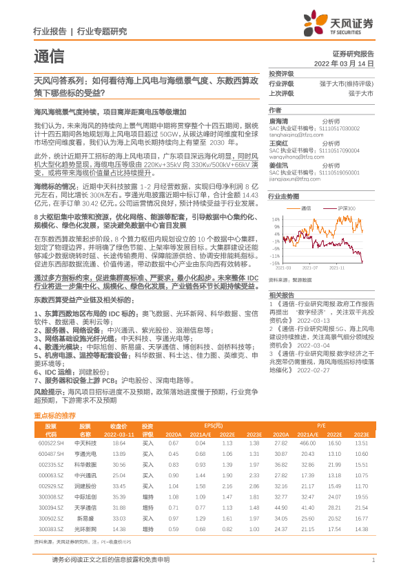 【天风证券】【20220314】天风问答系列:如何看待海上风电与海缆景气度、东数西算政策下哪些标的受益?-11页
