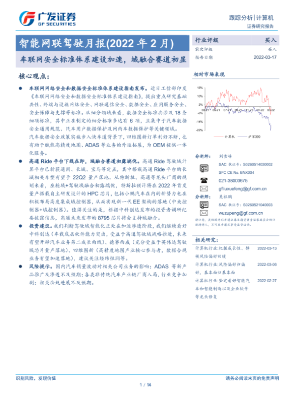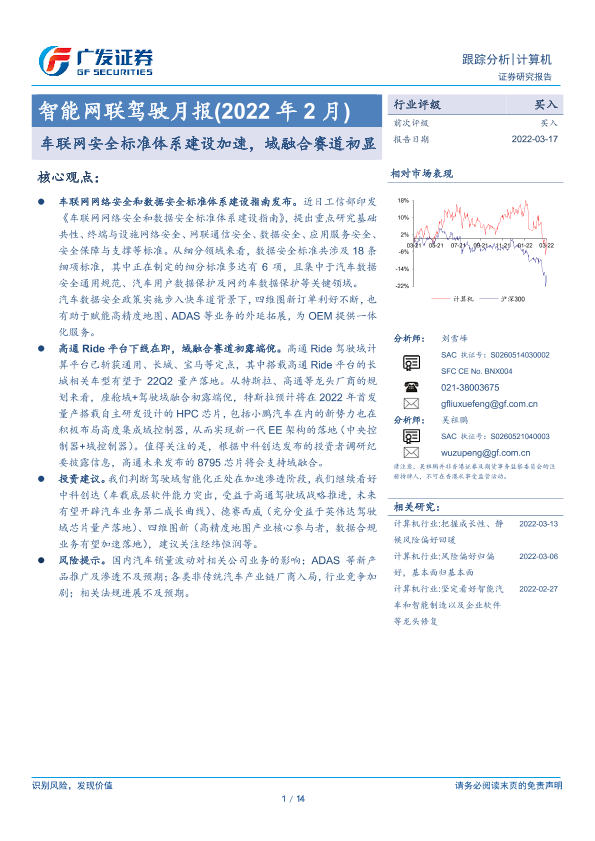【广发证券】【20220317】智能网联驾驶月报(2022年2月):车联网安全标准体系建设加速,域融合赛道初显-14页