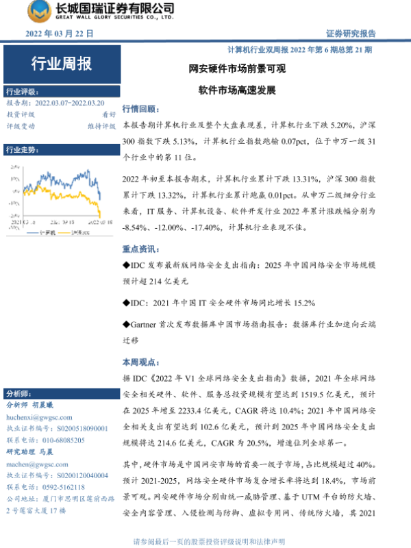 【长城国瑞证券】【20220322】计算机行业双周报2022年第6期总第21期:网安硬件市场前景可观 软件市场高速发展-8页