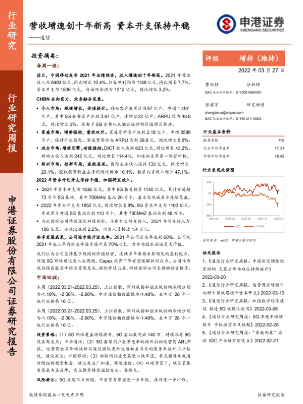 【申港证券】【20220327】通信:营收增速创十年新高,资本开支保持平稳-11页