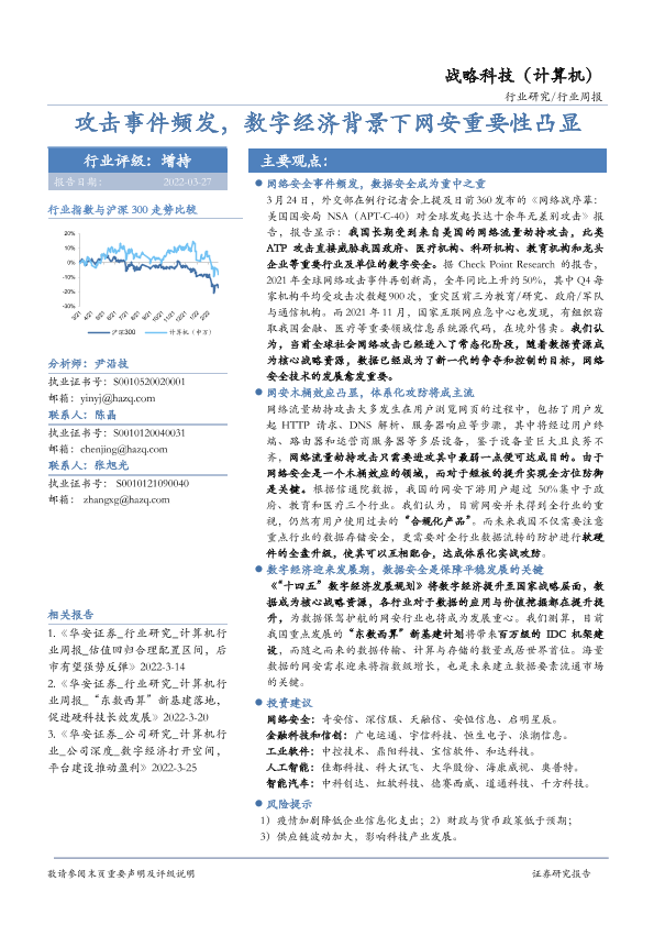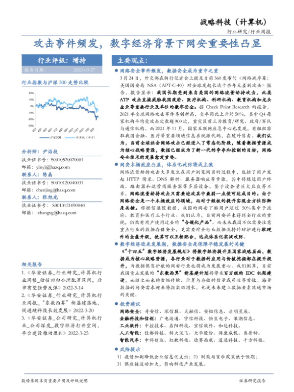 【华安证券】【20220327】20220327-华安证券-战略科技(计算机)行业周报:攻击事件频发,数字经济背景下网安重要性凸显-13页