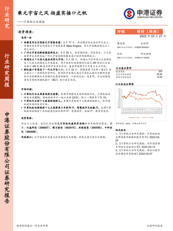 【申港证券】【20220327】20220327-申港证券-计算机行业周报:乘元宇宙之风 扬虚实接口之帆-8页