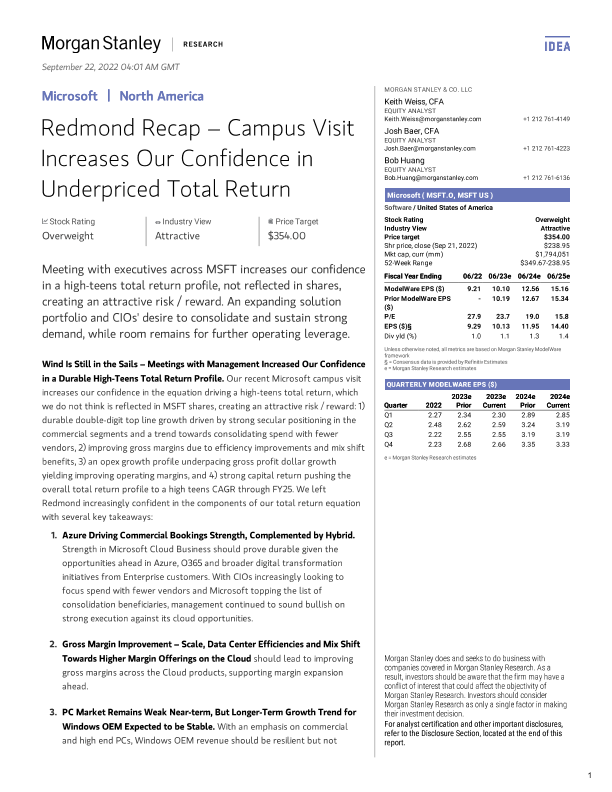 【Morgan Stanley】【20220922】Redmond Recap – Campus Visit Increases Our Confidence in Underpriced Total Return-19页