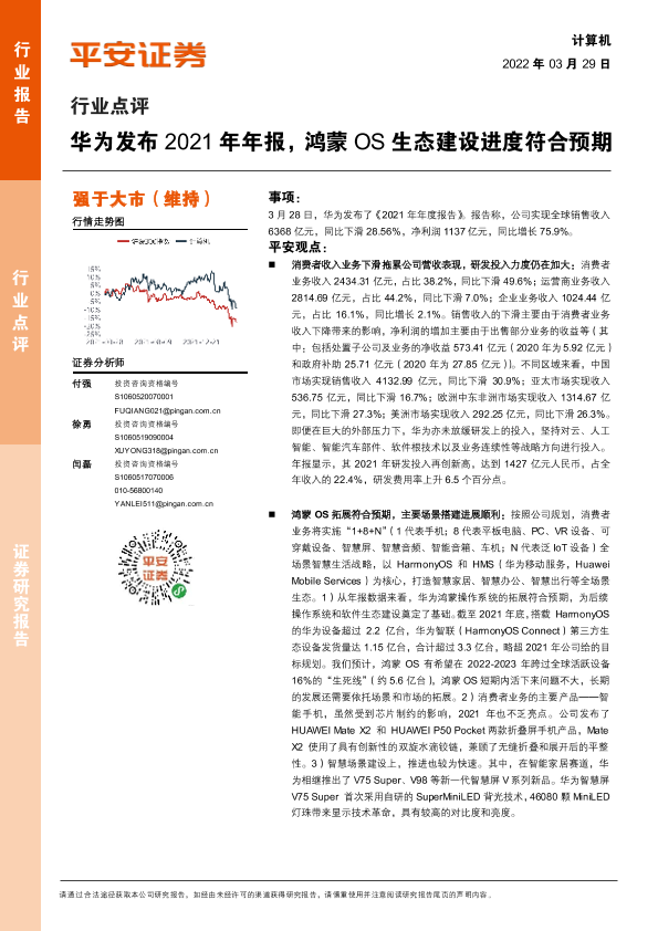 【平安证券】【20220329】计算机行业点评:华为发布2021年年报,鸿蒙OS生态建设进度符合预期-3页