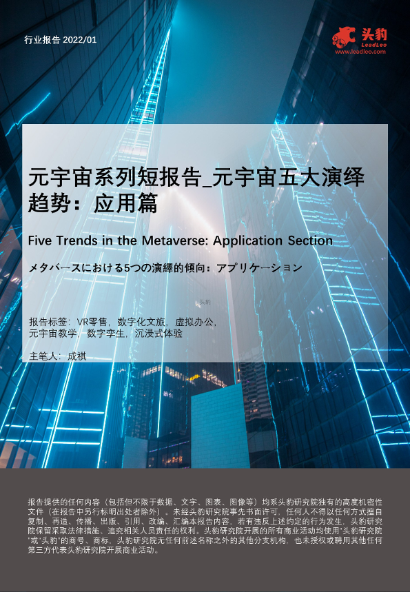 【头豹研究院】【20220330】元宇宙系列报告_元宇宙五大演绎趋势:应用篇-23页