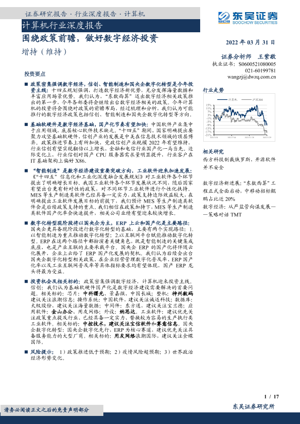 【东吴证券】【20220331】计算机行业深度报告:围绕政策前瞻,做好数字经济投资-17页
