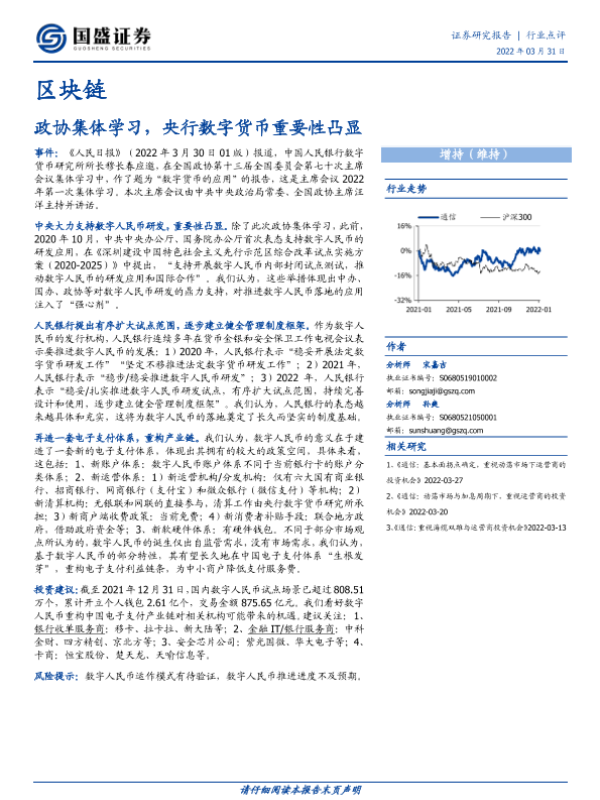 【国盛证券】【20220331】区块链:政协集体学习,央行数字货币重要性凸显-2页