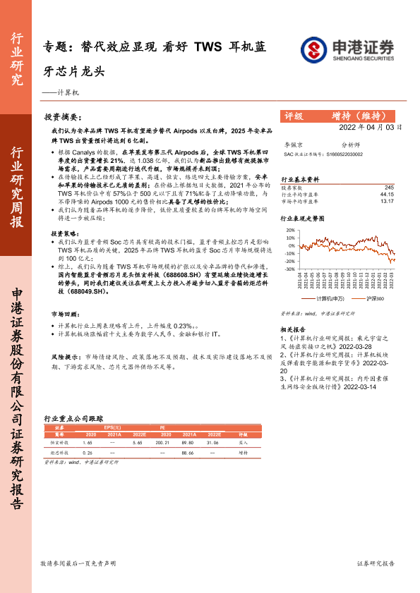 【申港证券】【20220403】20220403-申港证券-计算机专题:替代效应显现看好TWS耳机蓝牙芯片龙头-13页