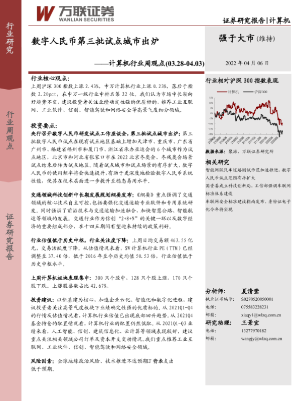 【万联证券】【20220406】20220406-万联证券-计算机行业周观点:数字人民币第三批试点城市出炉-11页