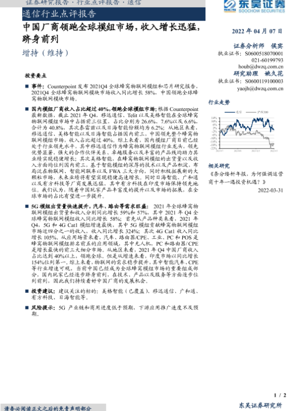 【东吴证券】【20220407】通信行业点评报告:中国厂商领跑全球模组市场,收入增长迅猛,跻身前列-2页