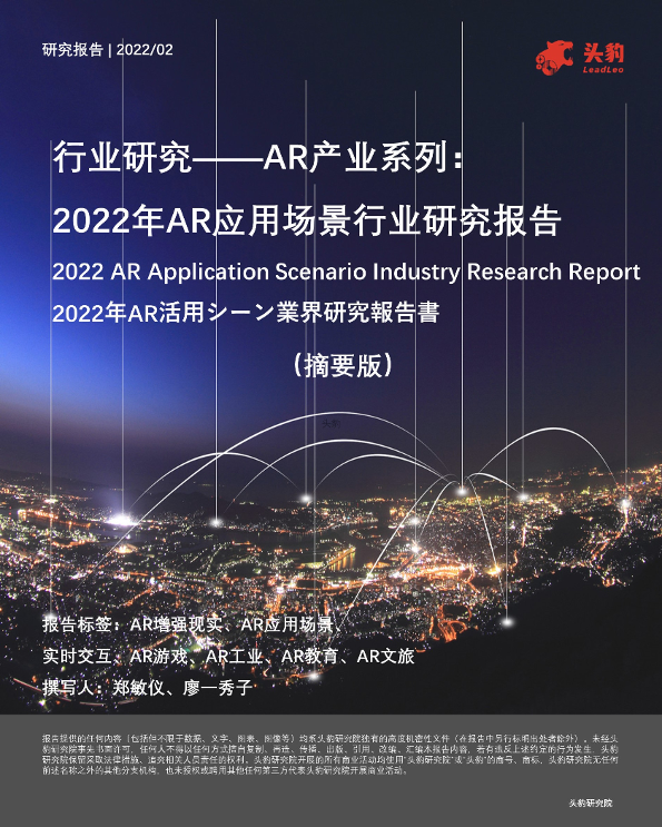 【头豹研究院】【20220408】2022年AR应用场景行业研究报告(摘要版)-14页