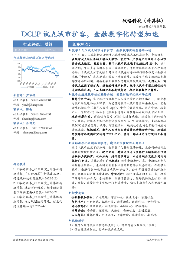 【华安证券】【20220410】20220410-华安证券-战略科技(计算机)行业周报:DCEP试点城市扩容,金融数字化转型加速-13页