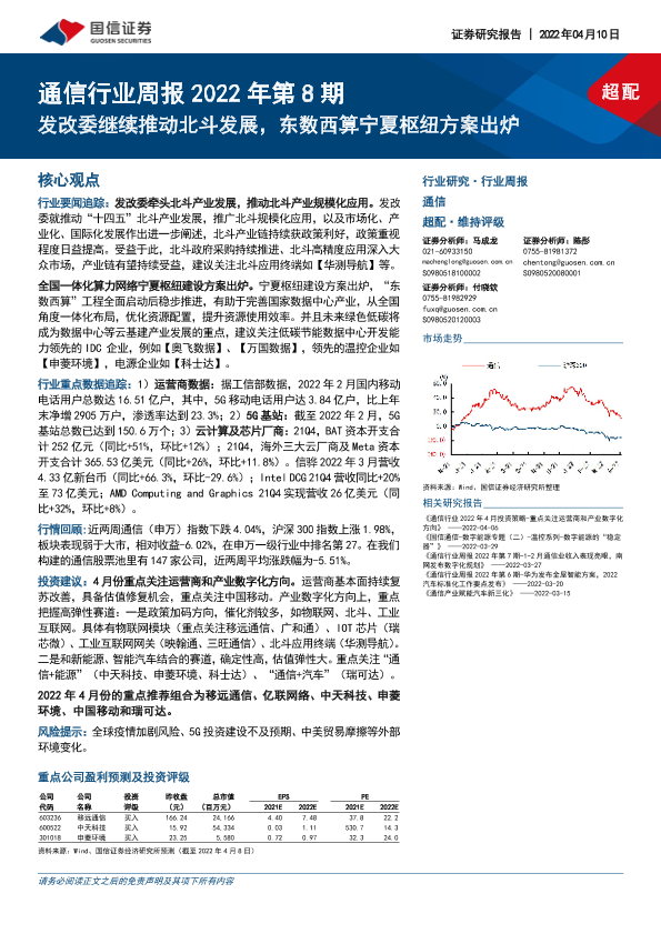【国信证券】【20220410】通信行业周报2022年第8期:发改委继续推动北斗发展,东数西算宁夏枢纽方案出炉-29页