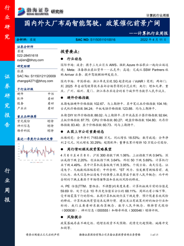 【渤海证券】【20220411】计算机行业周报:国内外大厂布局智能驾驶,政策催化前景广阔-15页