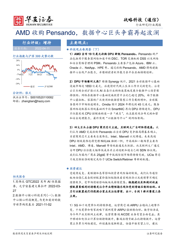 【华安证券】【20220411】20220411-华安证券-战略科技(通信)行业周报:AMD收购Pensando,数据中心巨头争霸再起波澜-17页
