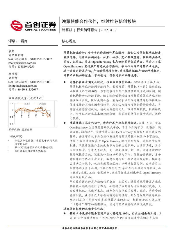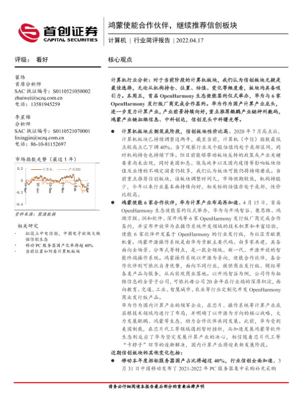 【首创证券】【20220417】20220417-首创证券-计算机行业简评报告:鸿蒙使能合作伙伴,继续推荐信创板块-3页