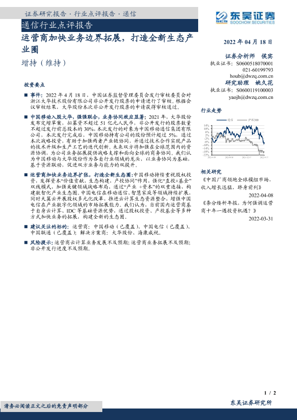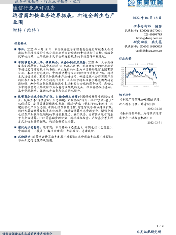 【东吴证券】【20220418】通信行业点评报告:运营商加快业务边界拓展,打造全新生态产业圈-2页