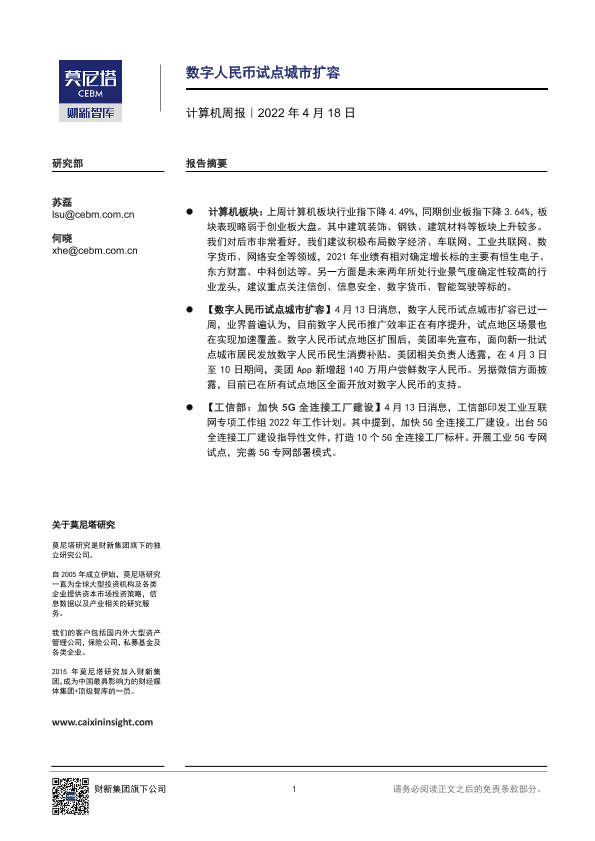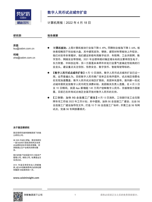 【莫尼塔研究】【20220418】计算机周报:数字人民币试点城市扩容-6页