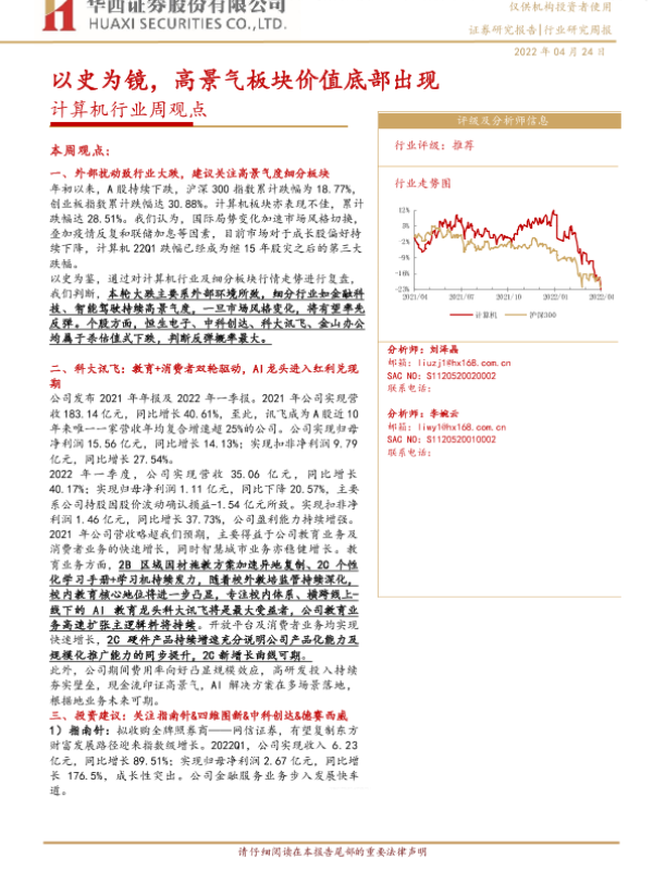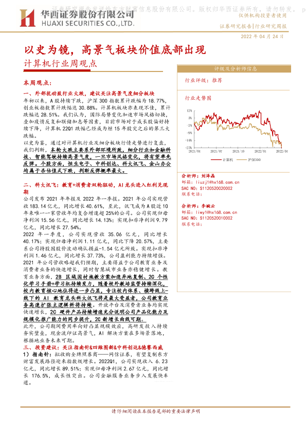 【华西证券】【20220424】20220424-华西证券-计算机行业周观点:以史为镜,高景气板块价值底部出现-37页