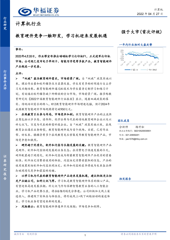 【华福证券】【20220427】计算机行业:教育硬件竞争一触即发,学习机迎来发展机遇-7页