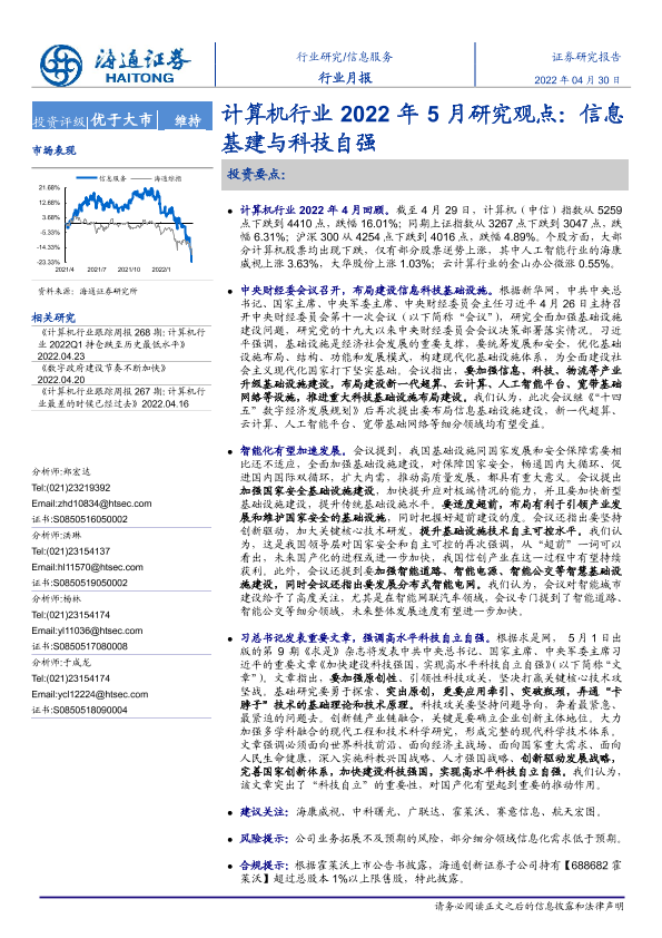 【海通证券】【20220430】计算机行业2022年5月研究观点:信息基建与科技自强-5页