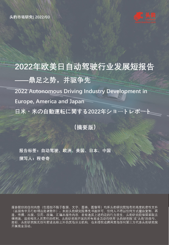 【头豹研究院】【20220506】2022年欧美日自动驾驶行业发展短报告:鼎足之势,并驱争先(摘要版)-10页