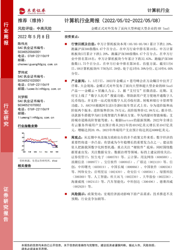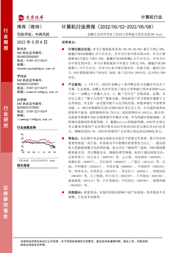 【东莞证券】【20220508】计算机行业周报:金蝶正式对外发布了面向大型和超大型企业的HR SaaS-7页