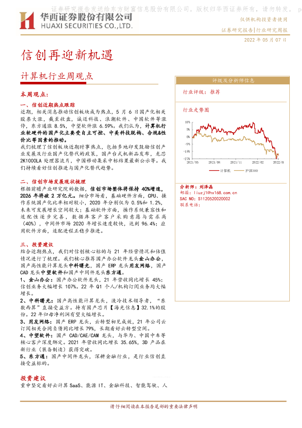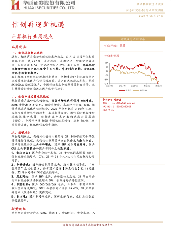 【华西证券】【20220507】20220507-华西证券-计算机行业周观点:信创再迎新机遇-33页