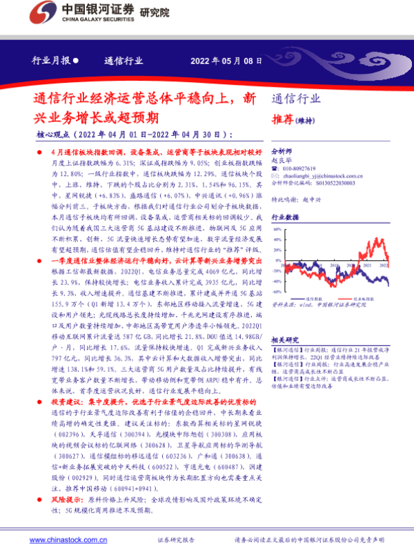【银河证券】【20220508】通信行业经济运营总体平稳向上,新兴业务增长或超预期-19页