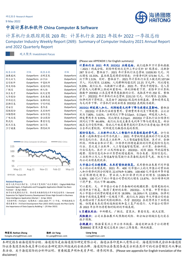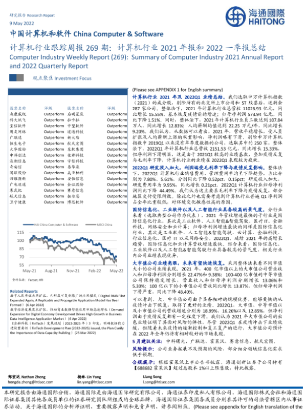 【海通国际】【20220509】计算机行业跟踪周报269期:计算机行业2021年报和2022一季报总结-13页