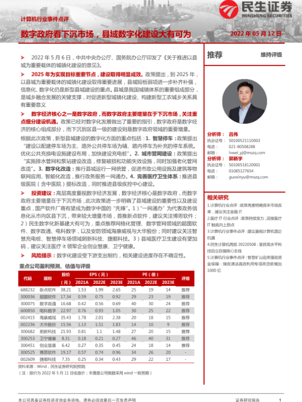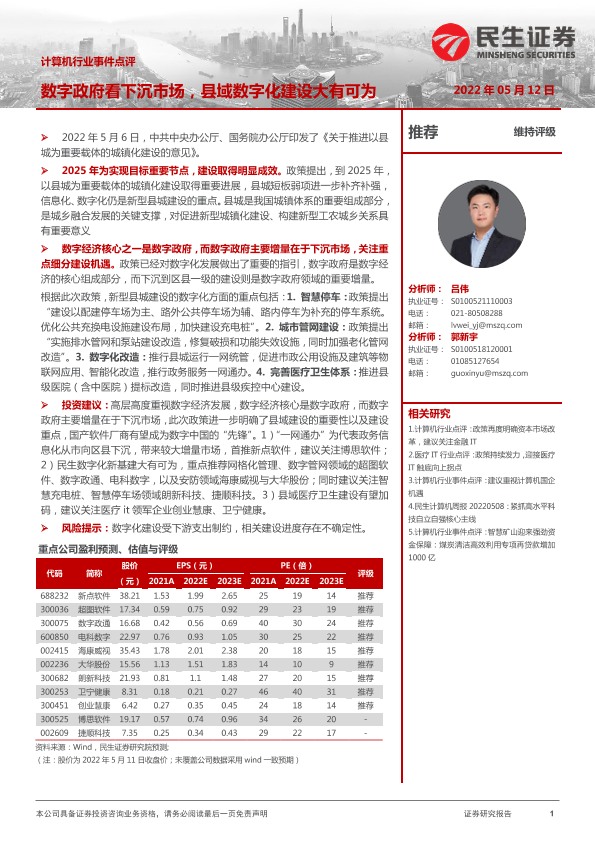 【民生证券】【20220512】计算机行业事件点评:数字政府看下沉市场,县域数字化建设大有可为-2页