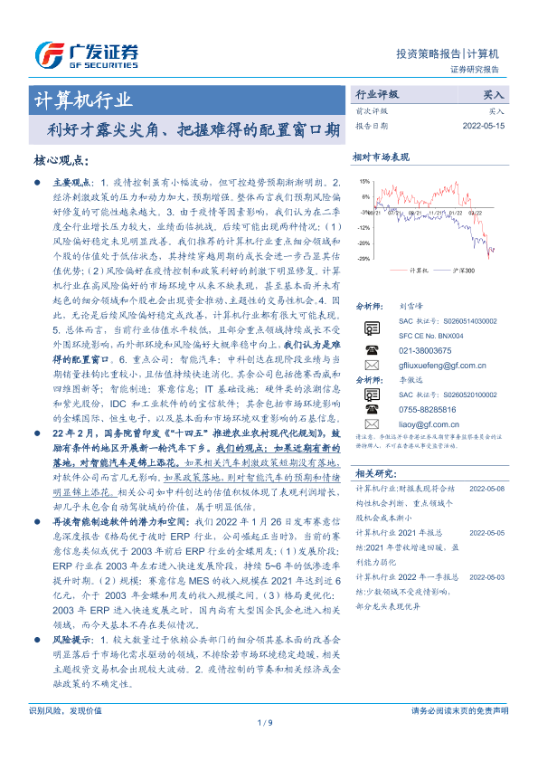 【广发证券】【20220515】20220515-广发证券-计算机行业投资策略报告:利好才露尖尖角、把握难得的配置窗口期-9页