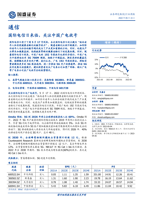 【国盛证券】【20220515】20220515-国盛证券-通信行业周报:国际电信日来临,关注中国广电放号-12页