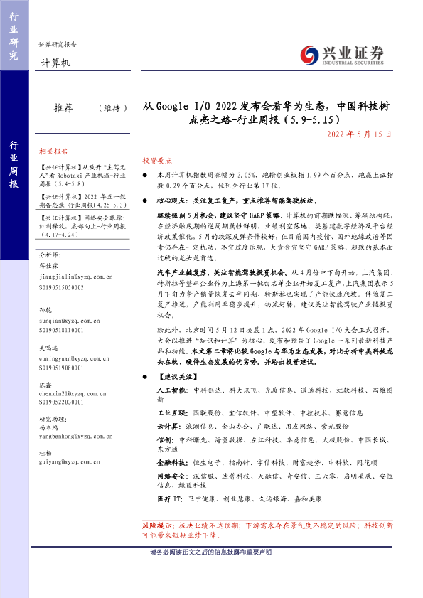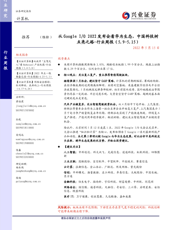 【兴业证券】【20220515】从 Google I/O 2022发布会看华为生态,中国科技树点亮之路-行业周报(5.9-5.15)-25页