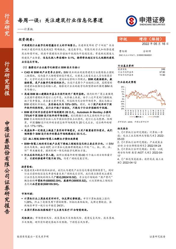 【申港证券】【20220516】20220516-申港证券-计算机行业研究周报:每周一谈:关注建筑行业信息化赛道-12页